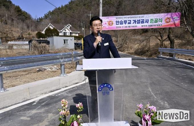 안승우교는 시설 노후화로 구조적 안전성이 낮아 사고 위험이 제기돼 왔으며, 협소한 교량 폭으로 인해 주민들이 통행에 불편을 겪어왔다. 이에 군은 주민 안전 확보를 위해 총사업비 3억 9천만 원을 투입해 기존 교량을 전면 철거하고, 연장 12.43m, 폭 5.8~8.8m 규모의 교량으로 새롭게 가설했다. 이번 재가설을 통해 대형 차량의 원활한 통행은 물론, 주민들의 생활 편의도 크게 개선될 것으로 기대된다.