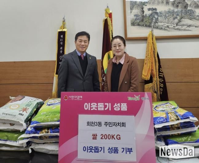 뉴스다 최광묵 기자 | 양주시 회천3동은 지난 4일 회천3동 주민자치회가 지역 내 어려운 이웃들에게 전달해달라며 쌀 200kg을 기탁했다고 밝혔다.