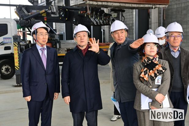 뉴스다 최광묵 기자 | 진주시는 조규일 진주시장과 김정환 경남테크노파크 원장이 지난 5일 이반성면 가산일반산업단지에 위치한 ‘미래항공기체(AAV) 실증센터’ 공사 현장을 방문해 공정 추진 현황과 안전관리 실태를 점검하고, 센터의 성공적 구축과 향후 협력 방안을 논의했다고 밝혔다.