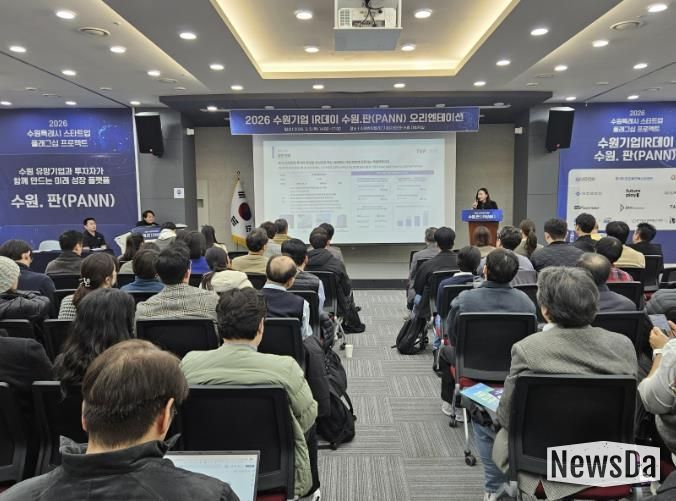 뉴스다 최광묵 기자 | 수원특례시가 ‘2026 수원기업 아이알(IR)데이 수원.판(PANN)1) ’ 신청 기업 관계자 등을 대상으로 5일 수원시 기업지원센터에서 오리엔테이션을 열었다.