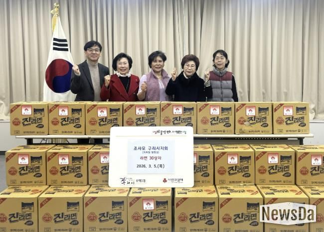뉴스다 최광묵 기자 | 구리시는 지난 3월 5일 ‘조사모(좋은 사람들의 모임)’ 연예인봉사단 구리시지회가 수택1동 행정복지센터를 방문해 지역 내 어려운 이웃을 위해 라면 40개들이 30상자를 기부했다고 밝혔다.
