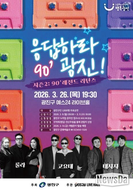 뉴스다 최광묵 기자 | 광진구가 오는 3월 26일, 예스24 라이브홀(광장동)에서 “응답하라 광진 시즌2: 90’ 레전드 리턴즈” 콘서트를 개최한다.