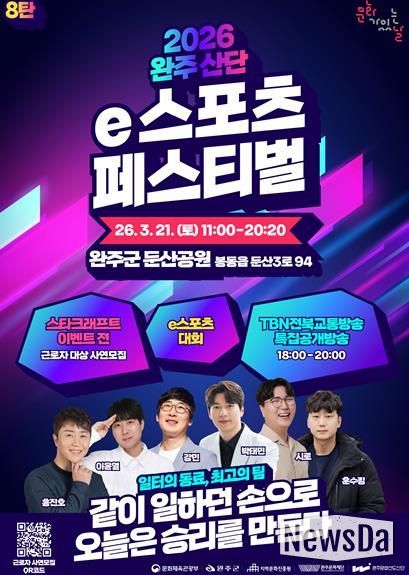 뉴스다 최광묵 기자 | 완주문화재단은 오는 3월 21일에 완주군 둔산공원 일원에서 2026 완주 산단 e스포츠 페스티벌을 개최한다.