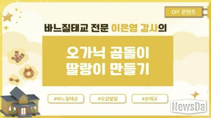 또한 3강은 엄마의 소근육 운동과 함께 아기의 두뇌 발달과 정서적 교감을 돕는 손수 제작(DIY) 손태교 교육으로 진행된다. 양평군보건소는 선착순 40명을 모집해 손수 제작(DIY) 바느질 태교 재료(곰돌이 딸랑이 만들기)를 자택으로 배송할 예정이며, 참여자는 동영상 강의를 보며 2주간 교육을 받을 수 있다.