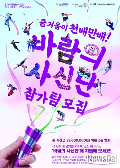 뉴스다 최광묵 기자 | (재)화성시문화관광재단은 제16회 화성 뱃놀이 축제의 주인공이 될 ‘바람의 사신단 댄스 퍼레이드‘경연 참가팀을 모집한다.