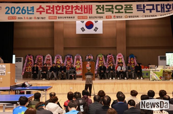 뉴스다 류대현 기자 | 합천군은 6일부터 8일까지 합천 다목적체육관에서 열린 ‘2026 수려한합천배 전국오픈탁구대회’가 성황리에 마무리됐다고 밝혔다.