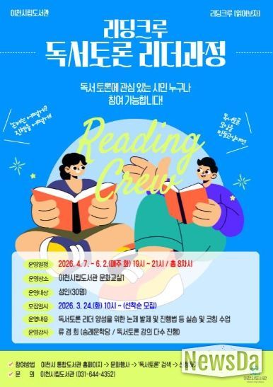 뉴스다 최광묵 기자 | 이천시립도서관이 시민이 함께 읽고 나누는 새로운 독서 프로젝트 ‘리딩크루 : 함께읽기’를 시작한다.