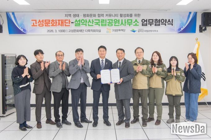 뉴스다 최광묵 기자 | 평화 경제 거점 도시 강원 고성군 산하 고성문화재단과 설악산국립공원사무소(소장 노윤경)가 고성군의 생태·평화적 가치를 확산하고 지역사회 협력 커뮤니티를 활성화하기 위해 힘을 모으기로 했다.