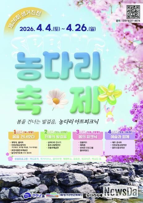 뉴스다 최광묵 기자 | 충북 진천군의 대표 봄 축제인 ‘제26회 생거진천 농다리축제’가 오는 4월 4일부터 4월 26일까지 문백면 농다리 일원에서 열린다.