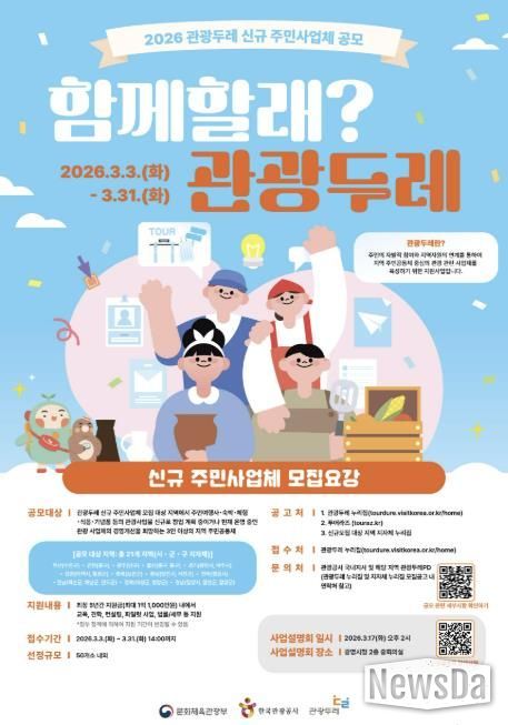 뉴스다 최광묵 기자 | 광명시가 지역 자원을 활용해 관광사업을 이끌어갈 ‘2026년 관광두레’ 신규 주민사업체를 모집한다고 11일 밝혔다.