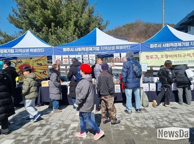 뉴스다 최광묵 기자 | 파주시는 사회적경제기업의 판로 확대와 지역경제 활성화를 위해 케이(K)리그2 파주 프런티어 에프시(FC) 홈경기와 연계한 ‘사회적경제기업 지역상생 특별장터’를 지난 7일 처음 개최했다.