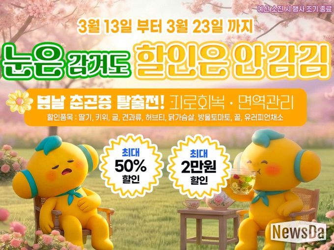 뉴스다 최광묵 기자 | 고흥군이 운영하는 온라인 농수축특산물 쇼핑몰 고흥몰이 오는 3월 13일부터 23일까지 봄철 건강관리를 위한 특별 기획전 ‘눈은 감겨도 할인은 안 감김’을 진행한다.