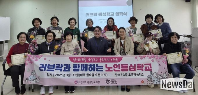 뉴스다 최광묵 기자 | 이천시는 이천시노인종합복지관에서 지난 3월 9일‘러브락과 함께하는 노인동심학교 1기’ 개강식을 진행했다고 전했다.