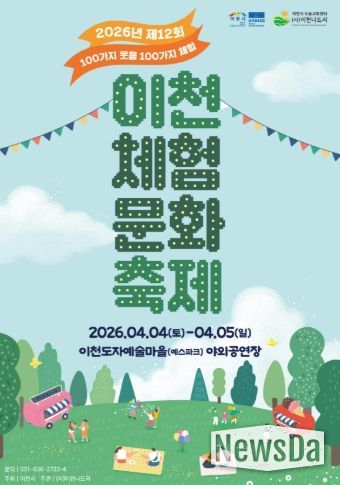 뉴스다 최광묵 기자 | 이천시는 오는 4월 4일부터 5일까지 이틀간 이천도자예술마을 예스파크(야외공연장 일원)에서 ‘2026년 제12회 이천체험문화축제’를 개최한다고 밝혔다.