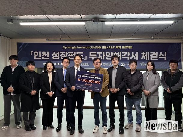 이번 투자계약은 지난해 신규로 추진된 인천의 유망 기업 의무투자 프로그램인 ‘Synergia Incheon(시너지아 인천) 연구개발(R·D) 투자 프로젝트’를 통해 진행됐다. 이 사업은‘인천성장펀드 4호’의 전략적 투자 지원 프로그램으로, 최종 선정 기업에 10억 원의 직접 투자와 함께 중소벤처기업부 ‘스케일업 팁스(Scale-up TIPS) 연구개발(R·D) 프로그램’ 추천을 연계해 지원한다.