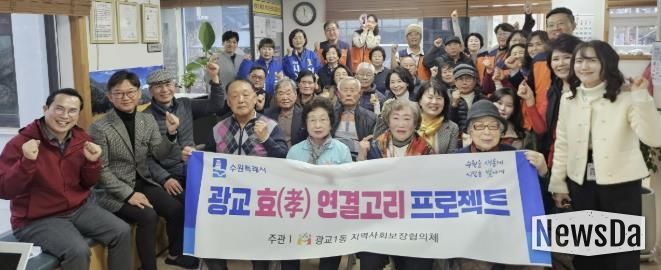 뉴스다 최광묵 기자 | 수원시 영통구 광교1동은 지난 3월 11일 광교1동 지역사회보장협의체와 대학로 경로당이 ‘효(孝) 연결고리 프로젝트’를 추진하며 어르신 돌봄과 지역사회 협력 체계를 강화했다고 밝혔다.