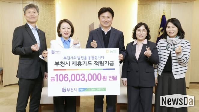 뉴스다 최광묵 기자 | 부천시는 지난 11일 NH농협은행 부천시지부가 부천시 제휴카드 이용으로 적립된 1억 600만3천 원을 시에 전달했다고 12일 밝혔다.