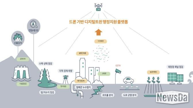 드론 활용 공공서비스 사업은 고정밀 3차원 공간정보에 인공지능 분석 모델을 개발해 농경지 이용 현황, 하천 준설량, 산사태 위험 분석 등 데이터 기반 행정에 활용할 계획이다.