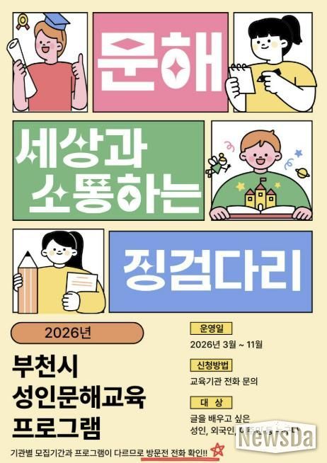 오미경 부천시 평생교육과장은 “성인문해교육을 통해 배움의 기회를 놓친 시민들이 다시 학습의 길로 나아갈 수 있도록 돕겠다”며 “누구나 소외됨 없이 배우고 성장할 수 있는 평생학습도시 부천을 만들어 가겠다”고 말했다.
