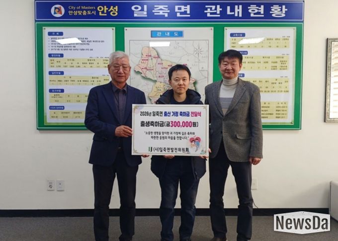 앞서 (사)일죽면발전위원회는 지역 공동체 활성화와 출생 장려를 위해 2026년 3월부터 일죽면에서 태어난 출생아 가정에 30만 원 상당의 축하금을 전달하기로 결정한 바 있다.