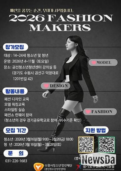 뉴스다 최광묵 기자 | 수원시청소년청년재단 권선청소년청년센터는 패션 분야 진로에 관심 있는 청소년과 청년을 대상으로 ‘패션메이커스(Fashion Makers)’ 프로그램 참가자를 모집한다.
