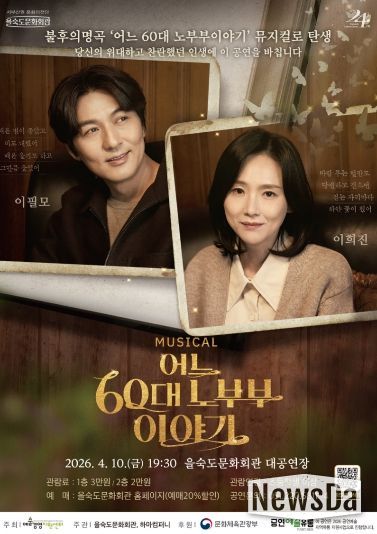 뉴스다 최광묵 기자 | 사하구 을숙도문화회관은 오는 4월 10일 오후 7시 30분 대공연장에서 뮤지컬 '어느 60대 노부부 이야기'를 선보인다.