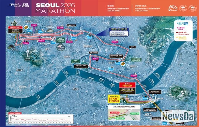 뉴스다 류대현 기자 | 3월 15일 열리는 ‘서울마라톤 대회’는 광화문광장에서 출발해 숭례문~청계천~동대문디자인플라자~서울어린이대공원~서울숲 등을 지나 잠실종합운동장까지 달리는 코스로, 엘리트 선수와 시민 러너들이 함께 서울 도심을 질주하며 봄의 정취를 만끽할 예정이다.
