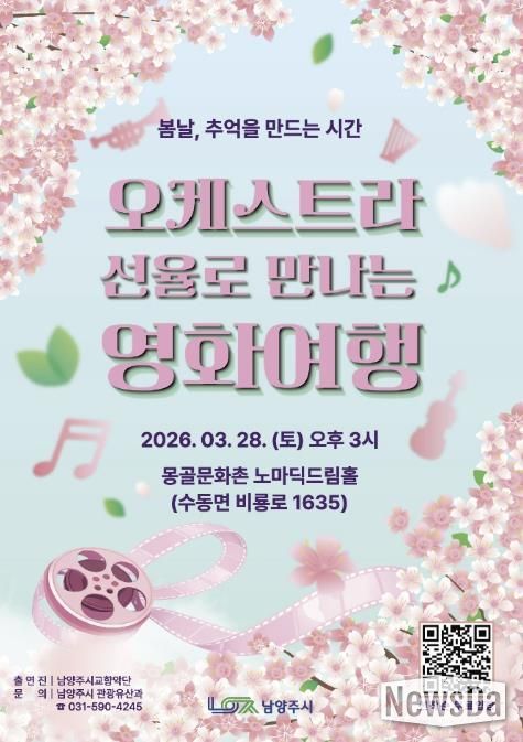 뉴스다 최광묵 기자 | 남양주시는 오는 3월 28일 오후 3시 수동면 몽골문화촌 노마딕드림홀에서 ‘오케스트라 선율로 만나는 영화여행’공연을 개최한다고 13일 밝혔다.