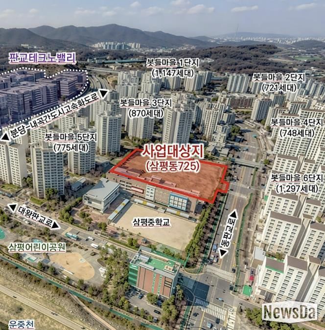 뉴스다 최광묵 기자 | 성남시가 경기도성남교육지원청, 삼평중학교와 손잡고 분당구 삼평동 725번지 일원 1만2152㎡의 시유지에 학교복합시설 조성을 위한 교육부 공모 사업에 참여한다.