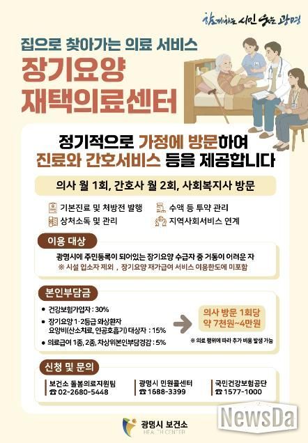 뉴스다 최광묵 기자 | 광명시가 거동이 불편한 장기요양수급자를 위해 집으로 찾아가는 ‘재택의료 서비스’를 시작한다.