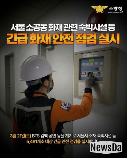 뉴스다 최광묵 기자 | 서울 소공동 화재 관련 숙박시설 등 긴급 화재 안전점검 실시