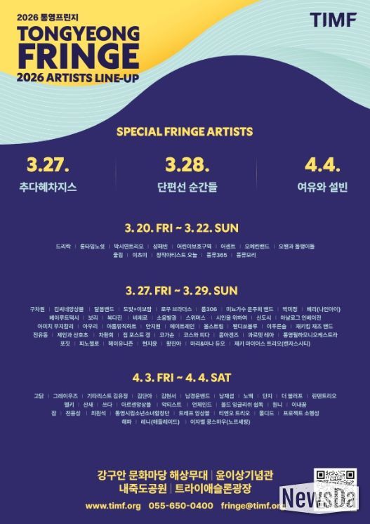 뉴스다 최광묵 기자 | 통영시는 오는 3월 20일부터 4월 4일까지 통영시 일원에서 개최되는 '2026 통영프린지'의 개막을 앞두고, 축제에 참여하는 주요 라인업과 공간별 관람 포인트를 공개했다.