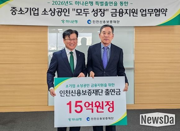 뉴스다 최광묵 기자 | 인천신용보증재단은 하나은행과 함께 인천 지역 중소기업과 소상공인의 안정적인 자금 조달을 지원하기 위한 '중소기업·소상공인 “모두 성장” 금융지원 업무협약'을 체결했다고 밝혔다.