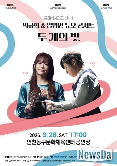 뉴스다 최광묵 기자 | 인천 동구문화체육센터는 오는 28일 세계적인 클래식 기타리스트 박규희와 작곡가이자 피아니스트 양방언 듀오의'두 개의 빛' 콘서트를 개최한다고 밝혔다.