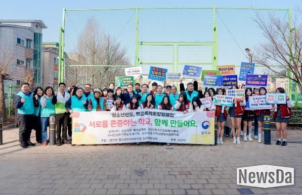 이날 캠페인에는 이권재 오산시장을 비롯해 법무부 청소년 범죄예방위원 오산지구위원회, 오산시청소년상담복지센터, 오산시 초·중·고 학교운영위원협의회, 운천중학교 학생자치회 등 다양한 기관·단체가 참여해 민·관 협력으로 진행됐다.