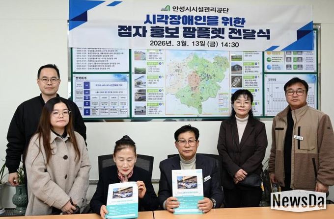 뉴스다 최광묵 기자 | 안성시시설관리공단은 지난 13일 안성시 시각장애인협회에 시각장애인의 교통정보 접근성 향상을 위한 점자 홍보물(팜플렛)을 전달했다.