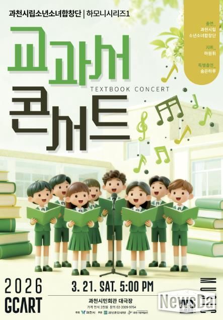 뉴스다 최광묵 기자 | 과천시립소년소녀합창단의 ‘하모니시리즈1 '교과서 콘서트'’가 오는 21일 오후 5시, 과천시민회관 대극장에서 열린다.