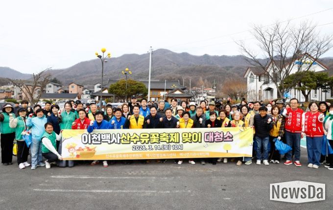 뉴스다 최광묵 기자 | 이천시 백사면은 오는 4월 3일부터 5일까지 개최되는 제27회 이천백사산수유꽃축제를 앞두고 지난 14일 산수유마을 일원에서 방문객을 맞이하기 위한 마을 대청소를 실시했다.