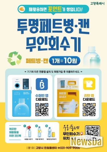 한편, 고양시는 무인회수기 외에도 재활용품 교환사업(종이팩·폐건전지 등을 종량제봉투로 교환), 고양 자원순환가게(재활용품 유가 보상) 등 시민 중심의 친환경 정책을 활발히 추진하고 있다.