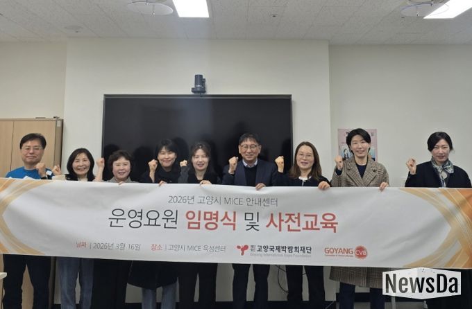 뉴스다 최광묵 기자 | 고양국제박람회재단은 2026년도 고양시 MICE 안내센터 운영을 맡을 중장년 인력 8명에 대한 임명식을 개최하고 본격적인 현장 운영에 돌입했다고 18일 밝혔다.