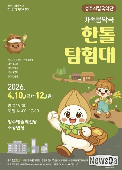 뉴스다 최광묵 기자 | 청주시립국악단은 4월 10일부터 12일까지 3일간 청주예술의전당 소공연장에서 제101회 기획연주회 가족 음악극 ‘한톨탐험대’를 개최한다고 19일 밝혔다.