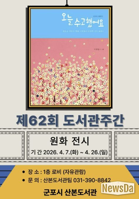 뉴스다 최광묵 기자 | 군포시 산본도서관은 도서관주간을 맞아 시민들의 독서문화 확산과 책을 통한 공감의 시간을 마련하기 위해 작가와의 만남, 북토크, 원화전시 등 다양한 프로그램을 운영한다.