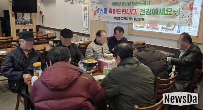 뉴스다 최광묵 기자 | 수원시 팔달구 매산동 지역사회보장협의체는 지난 18일 관내 식당 돈통마늘보쌈에서 매산동에 거주하는 홀몸 어르신 8분을 모시고 정성 가득한 생신상과 선물을 대접하는 뜻깊은 시간을 가졌다.