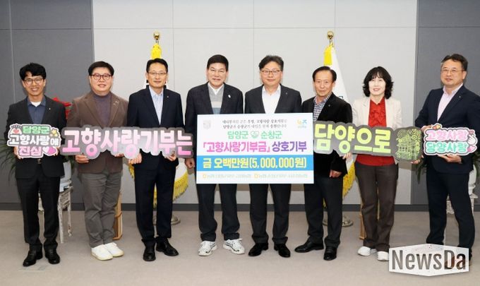 뉴스다 최광묵 기자 | 담양군은 지난 18일 담양군청에서 ‘담양군-순창군 고향사랑기부금 상호기부 기탁식’을 개최했다고 밝혔다.