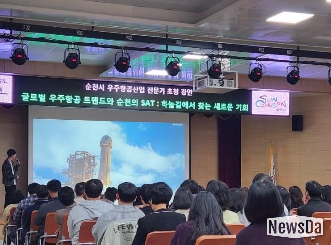 뉴스다 최광묵 기자 | 순천시는 지난 18일 시가 추진하고 있는 우주산업 정책에 대한 직원들의 이해를 높이기 위해 전문가 초청 특별 강연을 시청 대회의실에서 개최했다.