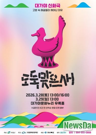 뉴스다 최광묵 기자 | 고령군은 대가야 신화극 뮤지컬 ‘도둑맞은 새’를 대가야축제 기간 중인 28일 13시와 16시, 29일 13시에 대가야문화누리 우륵홀에서 공연하며, 지역민과 국내·외 관광객들을 찾아갈 예정이다.