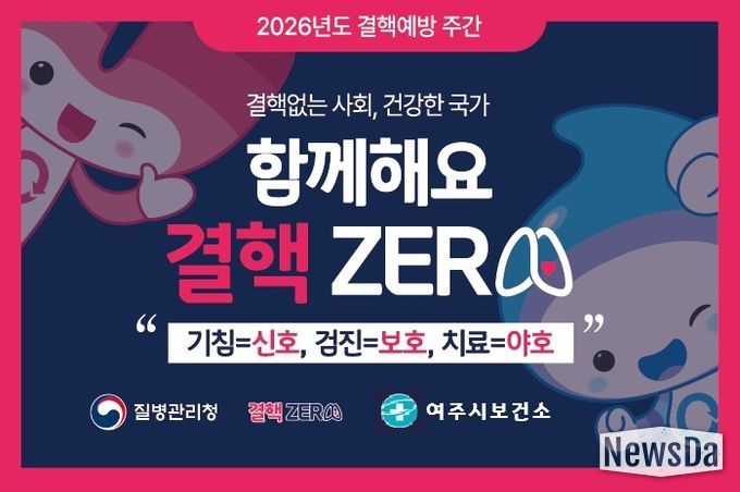 뉴스다 최광묵 기자 | 여주시 보건행정과는 오는 3월 24일 ‘제16회 결핵 예방의 날’을 맞아 결핵에 대한 경각심을 높이고 조기 검진의 중요성을 알리기 위해 3월 23일부터 27일까지 일주일간 결핵예방주간을 운영한다고 밝혔다.
