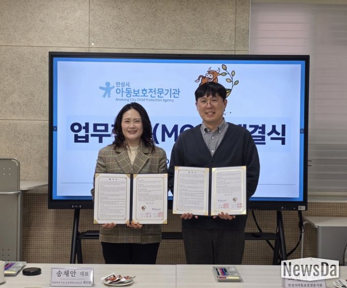 뉴스다 최광묵 기자 | 안성시아동보호전문기관과 제인팜은 지난 17일, 학대피해아동 가정의 심리·정서적 회복 지원을 위한 업무협약을 체결했다고 밝혔다.