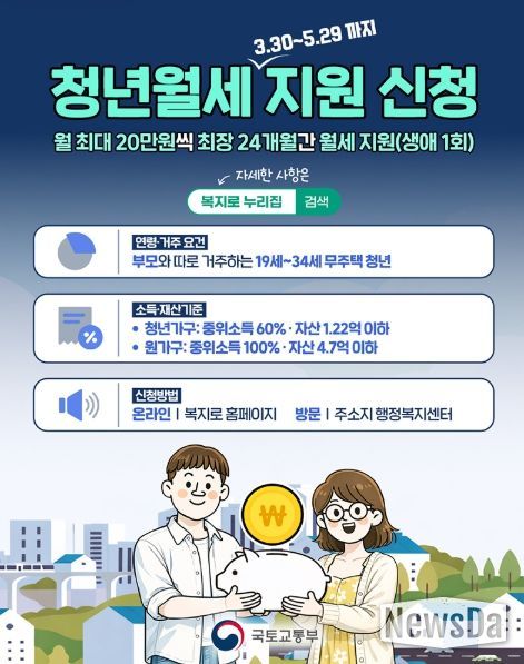 뉴스다 최광묵 기자 | 청년월세 지원 신청(3.30~5.29까지)