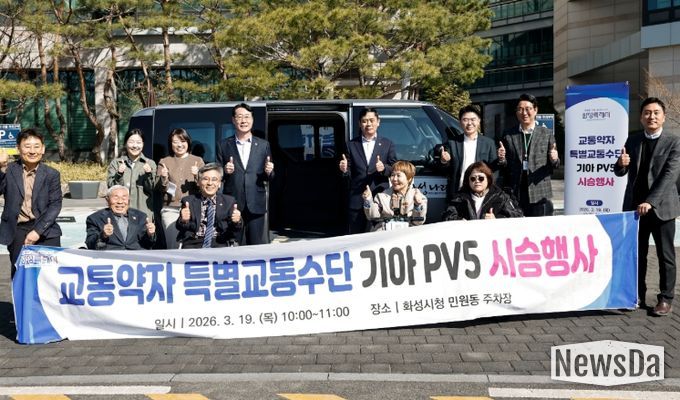 뉴스다 최광묵 기자 | 화성특례시가 교통약자의 이동 편의를 개선하기 위해, 교통약자 전용 모델로 제작된 ‘기아 PV5(휠체어 이용자 탑승 모델)’를 전국 최초로 도입한다. 시는 정식 운행에 앞서 19일 화성시청에서 휠체어 이용 교통약자들과 함께 차량의 편의성과 안전성을 점검하는 시승 행사를 열었다.